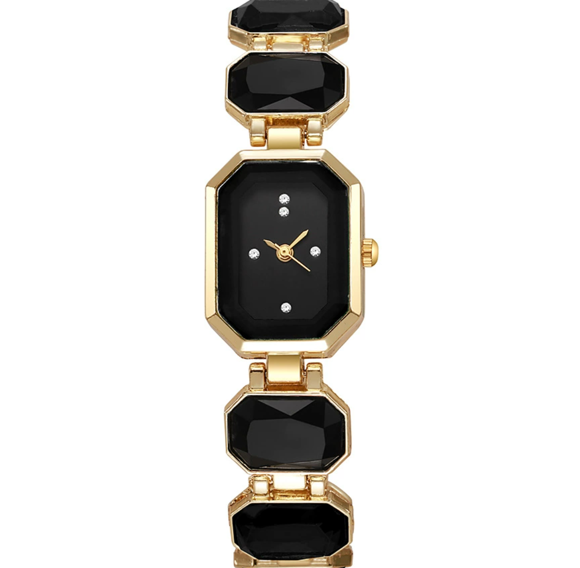 Ladies' Automatic Mechanical Watch with Black Gemstones